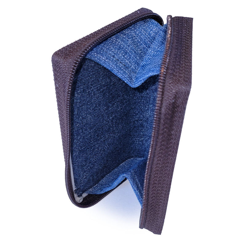 Each coin purse is carefully constructed by hand from vintage cassette tapes, reclaimed fabrics, and a brand-new zipper, creating a unique upcycled piece that is visually stunning and pays homage to both the past and the present. The interior fabric lining even includes “triangular fabrics” on the sides to prevent anything from falling out when opened.